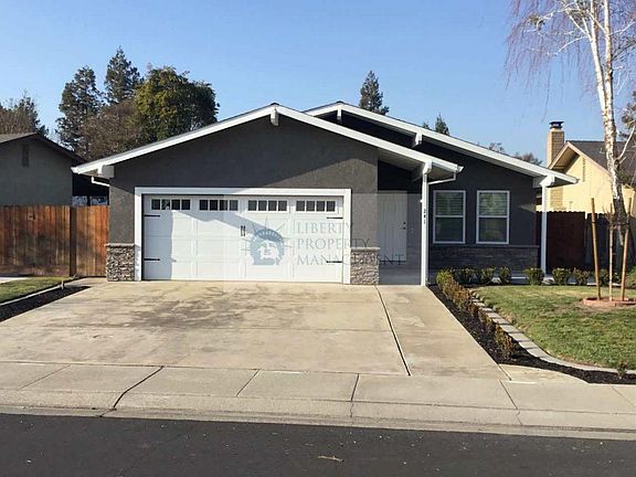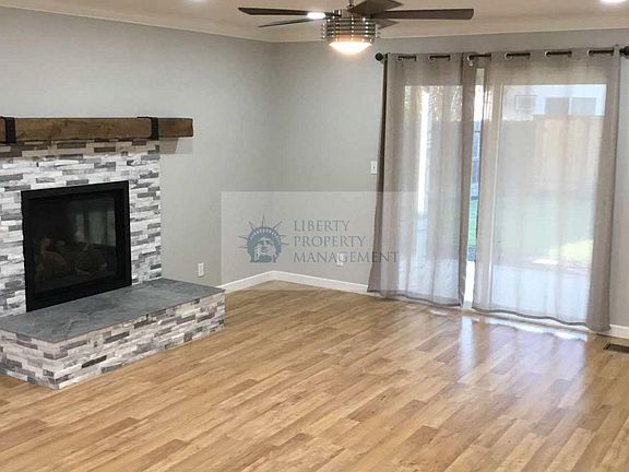 This single story house has approximately 1485 square feet with a family room, living room, dining area, carpets, hardwood laminate, blinds, tile counters, gas range, dishwasher, garbage disposal, laundry hook-ups in garage, central heat & air, ceiling fans, fireplace, 2-car garage with electric opener, front & backyard. Close to school, park & shopping. Pets very strictly negotiable. 12 Month Lease Required. Landscaping included.