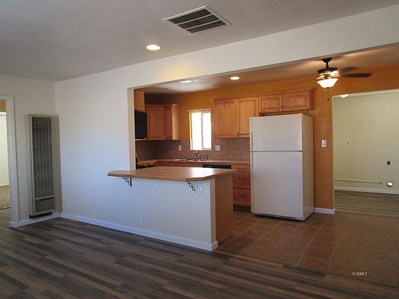 Two bedroom, One bathroom, house w/bonus room. U Shape kitchen with tile backsplash, & countertops. Built-in microwave, dishwasher & eat-in kitchen area. Vinyl tile flooring is also in the kitchen. New flooring in the living room, hallway, and laundry room. Carpet in both bedrooms. Full bathroom with tile shower surround and tile bathroom flooring. Storage shelving in the hallway. Vinyl tile flooring bonus room, and indoor laundry room. Two-panel backdoor with window panes leading to covered patio with large fenced backyard. Evaporative cooling and forced air heating. Copyright Ridgecrest Area Association of Realtors. All rights reserved. Information is deemed reliable but not guaranteed.