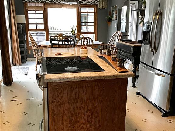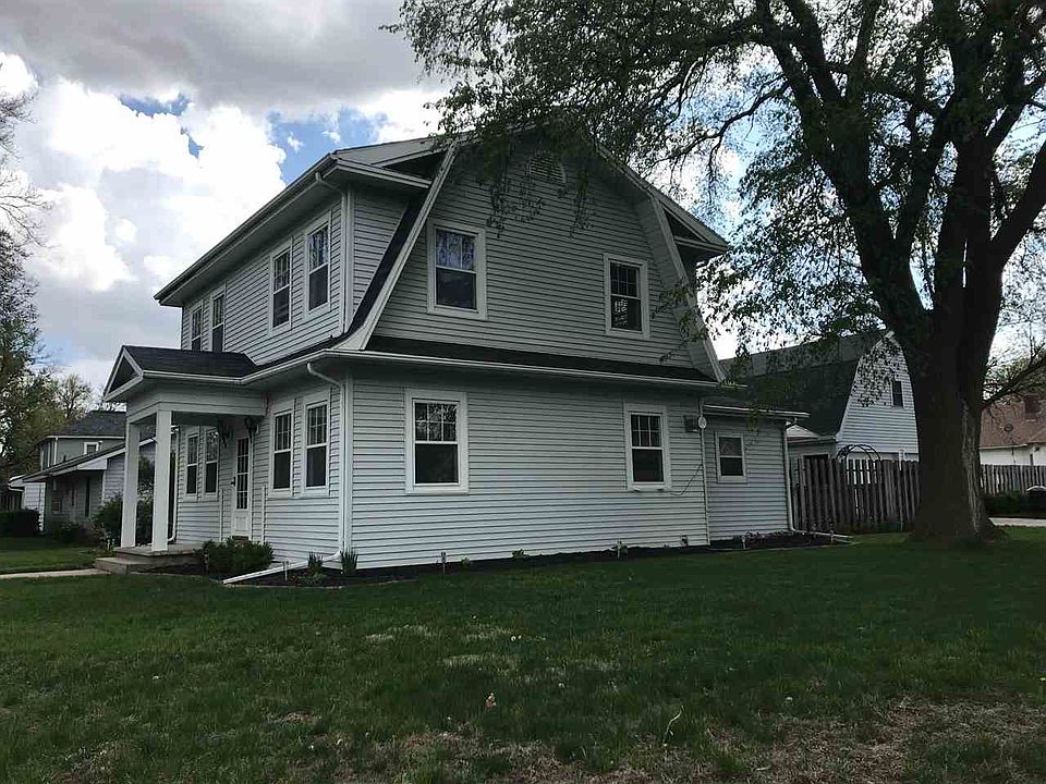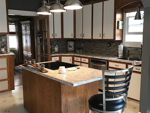This charming 2 story home is loaded with character. The main floor features: Updated kitchen with stainless steel appliances and glass tile backsplash; open eating area with access to the wraparound deck; sitting room or dining room with beautiful hardwood flooring; office/sunroom; living room with gas fireplace; large full bath. 2nd floor features: Master bedroom with sitting area and access to upper deck; 2nd bedroom; full bath. There are 2 nonconforming bedrooms in the basement with closets; laundry and furnace room; storage room. Radiator heat and window A/C. There are 2 bonus rooms above the detached 2 car garage. Both rooms are finished with drywall and carpet. Would make a great exercise room/art studio or ???. Home sits on a corner lot with wood privacy fence and alley access to back yard.