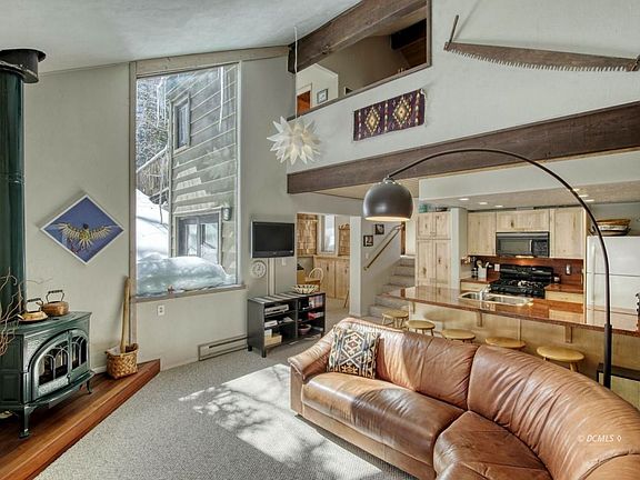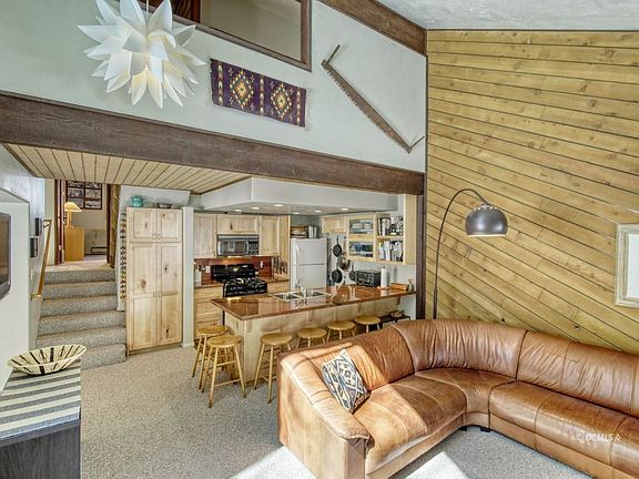 Great opportunity for cabin style unit in Brian Head, without the worry of maintenance and snowplowing. This ski in/out duplex condo unit is one of a kind. Two decks totaling 256 square feet of private deck space tucked in the aspens. Access to the town walking trail right from your back yard. Spacious open concept living room with gas wood burning stove and glass slider to deck. Kitchen remodel in 2019 w/granite counters and gas stove. Dining room located off the kitchen w/built in storage and glass slider to second deck space. Master on the main level, high ceilings w/his and her closets. Upstairs the loft bedroom complete w/bunk bed nook, sitting area and en suite bathroom featuring large soaking spa tub and bonus storage space. Unit comes furnished, artwork not included.