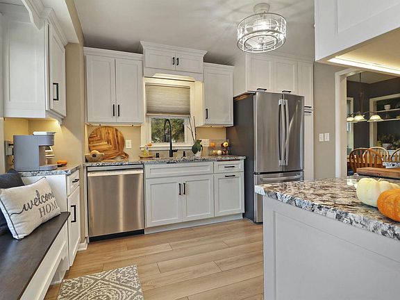 Discover the charm of this updated ranch home, complete with 3 bed, 2 full baths, a 2.5-car garage, and fenced-in yard. Step inside to a brand-new custom kitchen showcasing stunning cabinetry, sleek granite countertops and durable LVP flooring. The remainder of the main level offer beautiful refinished hardwood floors (2024) that add warmth throughout. This home also features professional landscaping completed this year, highlighting a gorgeous selection of plantings including ginkgo trees, white scotch pine pruned to pan style, dwarf birch trees, pom pom junipers and more--creating inviting curb appeal and a serene outdoor space. Additional updates include new concrete parking space on side of garage and new water heater. Great location near schools and parks. Schedule your showing today!