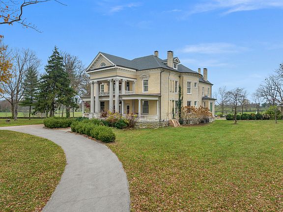 The icing on the cake is the circa 1906 Georgian Revival style 8,500 sqft, 4 bedroom 2 and 1/2 bath Mansion, which has been updated with modern kitchen and baths while retaining the beautiful antique woodwork and charm. Included in the area area the main house (true curtilage with surrounding stone fence) is a four room guest house, a pool and pool house with high quality outdoor kitchen. Just outside the curtilage you will find a historic one room log cabin...very cool, but in need of updating. The topography and and location of this property are unmatched in Central Kentucky. We look forward to qualified inquires on the one of a kind Kentucky Horse Farm.