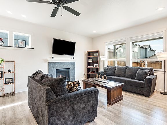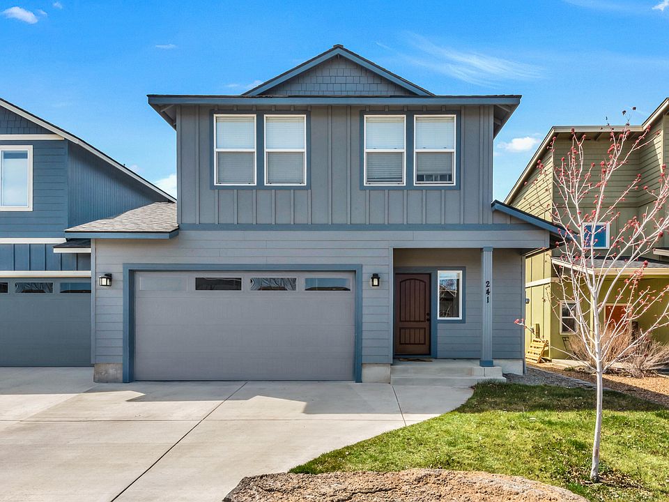 2020 built NW Redmond townhome with two car garage, fenced backyard, close to schools and Dry Canyon parks. Only connected at the garage wall, no shared living space walls. Finishes include hand textured walls, quartz countertops, stainless steel appliances, soft close cabinet drawers and doors, laminate floors, and wood wrapped windows. Open floor plan with center kitchen island and gas fireplace. Bedrooms and laundry room upstairs. Primary bedroom with vaulted ceiling, walk-in closet, tile surround shower and private balcony with views.