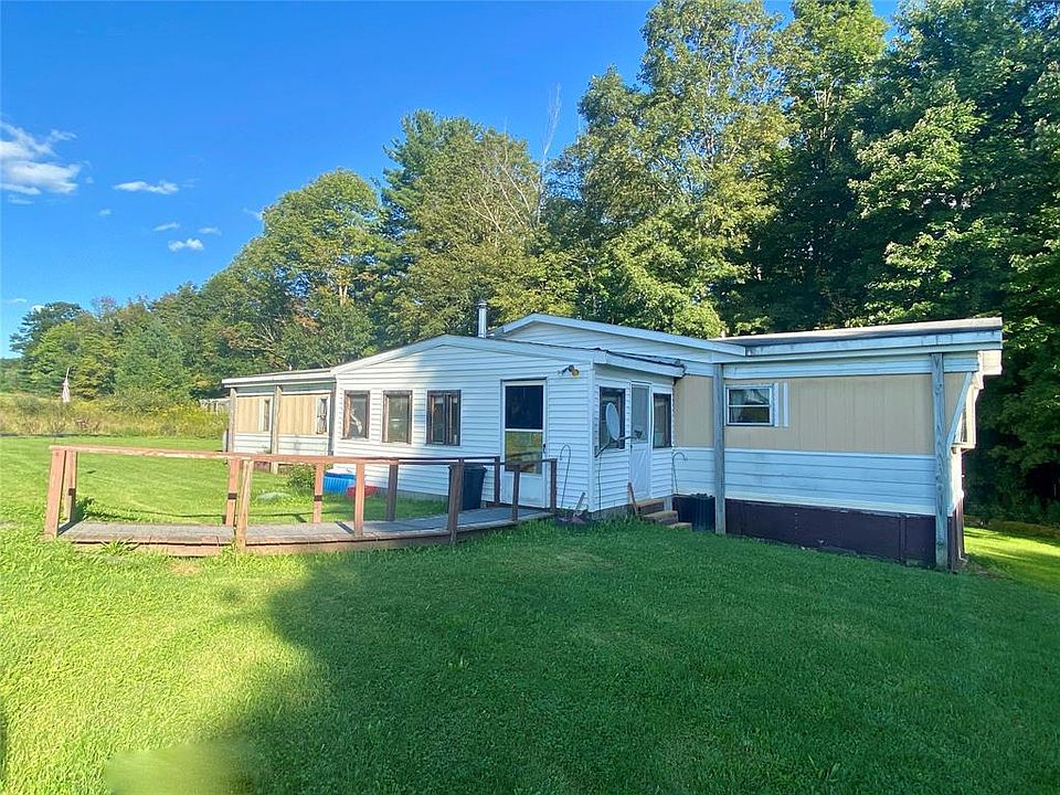 Deceivingly large and private single wide home on 43.75 acres! Two of the bedrooms both have en suite bathrooms, and there is also a spacious addition with 2 large closets, could be used as bedroom or additional living space. Newer appliances include fridge, stove, woodstove, furnace, and whole house generator. There are 3 sheds and an older trailer on the property for additional storage. Mostly wooded acreage provides a hunters paradise! 100% Money Back Guarantee; certain terms and conditions apply.