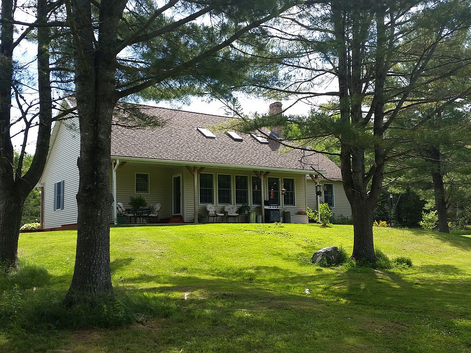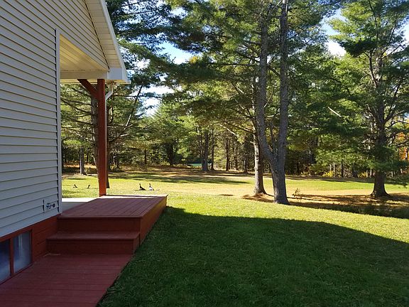 Ranch style home w/ cathedral ceilings, skylights and attached 2 car garage. Three bedroom, with the possibility of adding a 4th in separate room in basement, 2 bath home with 13.93 acres of total privacy along with 705 feet shore front. Open concept kitchen and living area with brick hearth. Large 32 x 34 ft. separate Garage (built in 2010) could easily be converted to guest house or a great space for a mechanic or woodworker to work from. Plenty of room. Must see to appreciate what this home has to offer. Additional waterfront land available if interested.