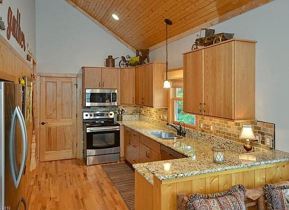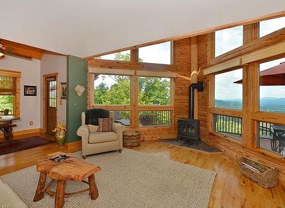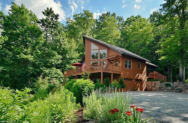 The essence of mountain living at it's finest offering unparalleled mountain/valley views. Rustic accents, exposed wood and fine finishes await in this "like new" mountain A-frame. Tremendous landscaping with native and specimen plantings, lush rear garden with dry creek of stone, fencing, fire pit. Screened porch, immaculate interior, workshop and storage abound in this exquisite home. Gated drive leads to tranquil setting w/views minutes from Pisgah Forest, Dupont State Park, REEB Ranch.