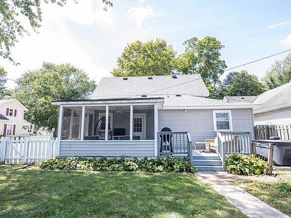 Welcome to this timeless Pendleton home, full of charm and everyday comfort! The inviting wrap-around porch sets the stage for a warm welcome, while inside you'll find soaring ceilings, hardwood details, and generous living spaces. The main level features a spacious living room with built-in storage, dining area with built-in corner seating, the primary bedroom, two full baths, and an extra-large laundry/mudroom. The kitchen is a standout with its center island, stainless steel appliances, brick accents, open shelving, and plenty of cabinetry-ideal for both everyday meals and entertaining. Upstairs, you'll find three more generously sized bedrooms filled with natural light. A sunroom opens to the deck and fully fenced backyard-perfect for relaxing, gardening, or entertaining. The detached two-car garage provides ample storage and parking. Best of all, this home is ideally located in Pendleton's historic downtown district, just a short walk from local shops, restaurants, parks, and schools. It's a wonderful blend of character, convenience, and small-town living. Welcome home!
