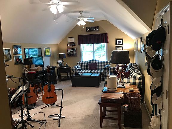 This beautiful home on the golf course is move in ready. 4 bedrooms and bonus room, three baths. Hardwood floors, carpeting and tile. Kitchen has stainless steel appliances and granite countertops, and tile backsplash. Two of the bathrooms have granite countertops. Kitchen and baths have tiled floors. Less than 2 miles from grocery stores, restaurants and entertainment. Lovely backyard with firepit and waterfall near cart path. Get Pre-qualified. Please call for an appointment. No Agents please. Price was set to be found on Zillow and sold without agent commissions.