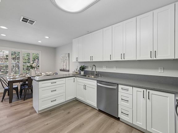 This stunningly remodeled townhouse, a perfect blend of elegance and comfort in a sought-after neighborhood with a culdesac location. With 2 bedrooms, a separate office space, and a layout designed for modern living, this property is a rare gem for anyone seeking a sophisticated yet cozy home. Vaulted ceilings and large windows create an airy, open ambiance, filling each room with natural light and enhancing the sense of spaciousness.This townhouse has been thoughtfully remodeled, offering contemporary fixtures and finishes that cater to a modern lifestyle while retaining its charming character. Step outside to discover your private backyard, a serene and beautifully landscaped space perfect for entertaining, relaxing, or enjoying outdoor dining. The intelligently designed floor plan maximizes both living and storage space, ensuring comfort and functionality in every corner. Situated in a friendly community with convenient access to local amenities, this townhouse is in a primelocation for both peaceful living and proximity to a variety of dining options and the benefit of being near top-rated schools.