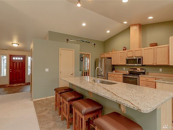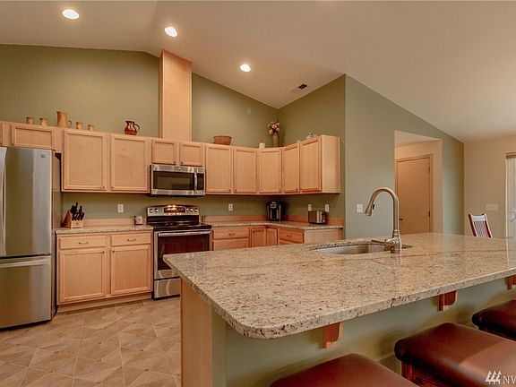 IMMACULATE 4 bdrm, single story home. The great room w/vaulted ceilings opens into a beautiful kitchen w/granite counters and island seating. Spacious Master Suite w/ walk-in closet, soaking tub, separate shower, & dbl sinks! 3 big additional bdrms w/ TONS of storage & a full guest bath! Flex Room used as an office. Attached 2 car garage AND detached garage w/workshop. Beautiful back yard & patio, nice landscape. 3 irrigated acres, plenty of space for pasture. Lovely Mt. Rainier & sunset views!