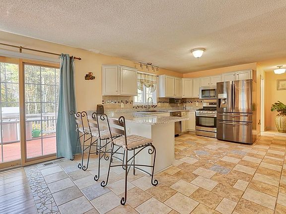Style meets function in this gorgeous Colonial on a cul-de-sac in the desirable neighborhood near the Ludlow Reservoir. Surrounded by woods, the private lot of 2+ acres will be your sanctuary, whether you enjoy the terraced backyard on the large deck, by the fire pit or through your window. The updated property has many turn-key features, including a farmhouse porch, pleasing decor and wood floors throughout. The kitchen is a stunner, with stainless steel appliances, granite counters, unique copper sink, tile mosaic floor, and breakfast bar, opening to the living room with fireplace and bamboo flooring so you can entertain with ease. A partially finished basement with access to the two-car garage has bonus rec space, and a powder room with laundry on the main floor is great for guests. Three bedrooms await upstairs, including the master with XL closet and en suite bath. It's just what you're looking for! Take a tour during the open house on Sun, Nov 11th 12:30- 2:00 P.M.