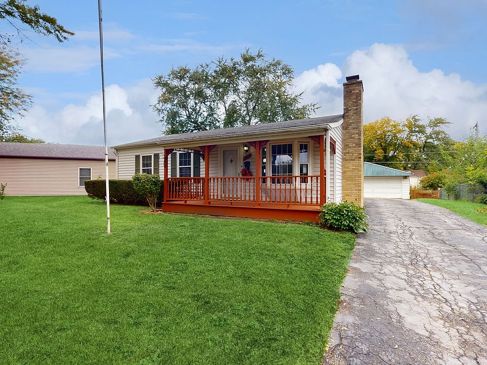 Welcome to this delightful three-bedroom, two-bath home, where a charming front porch invites you inside. With almost 1300 square feet, this house offers more space than meets the eye. The layout is versatile, featuring a cozy living room with a wood-burning fireplace and a bay window that overlooks the front yard. The kitchen is equipped with a Bosch dishwasher, as well as plenty of cooking and storage space with new counter tops and a farmhouse sink. The primary bedroom easily fits a Queen size bed and features a private bath and a walk-in closet. Front loading side by side laundry is located on the first floor. Prepare to be amazed by the expansive family room addition, complete with stunning wood beams, a bay window, and a substantial gas-starter fireplace - all overlooking the beautifully landscaped fenced-in yard. There is an unfinished basement under the addition with a newer HVAC and hotwater heater, as well as a radon mitigation system and plenty of storage. This home also comes with the added convenience of a whole house generator. The driveway and 2.5-car garage provide ample parking space. Conveniently situated near schools, parks, soccer fields, walking paths, Forest preserves, restaurants, highways, and shopping.