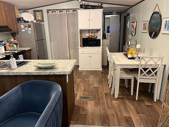 Mobile home with built on front and back porches, small fenced back yard, and 6.57 acres of land, including a large portion of wooded area. 3 bedrooms, 2 full baths, 927 square feet. Property includes a shop wired for electricity. Was intended to be a car body shop, so it includes nearly finished vents for fumes. This property would be a great investment for a mechanic or body shop person, wanting to work from home. Serious inquiries only. Owner financing is NOT an option.