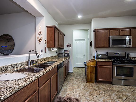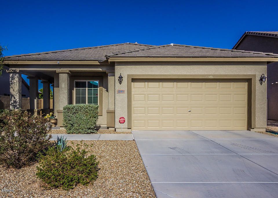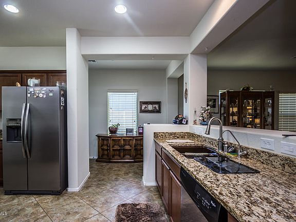 This great home is only 1.5 Miles from I-10 on the Northeast edge of Buckeye. You will notice there are no neighbors in front or behind you.Inside it has heavily upgraded kitchen with Granite counters, stainless appliances, gas stove, and slide out shelves in the pantry. Beautiful large tile in all the right places. Nice open floor plan flows into a large family great room. Large master bedroom with walk-in closet. Garage has soft water system and 220 outlet. Outside you will find a nice low maintenance landscaped eco-friendly back yard. This home has been meticulously taken care of.