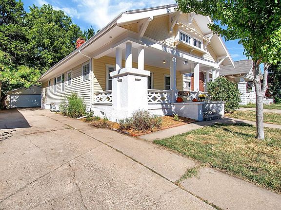 Have you been looking for a home full of charm? Do not miss out on this gem centrally located near downtown Wichita! The wide front porch and newly painted exterior welcomes you as you pull up the brick road. Inside, you will find original woodwork with built-ins and lots of character. Main floor boasts a living room right off the front door, spacious dining room and an updated kitchen. Off the living room is a bonus room that the previous owners used as a third bedroom. Two other bedrooms, one of them having a full en suite, and a full bathroom with tub round out the living quarters. Original wood floors can be found throughout most of the house. Many rooms are freshly painted and there are lots of great built-ins for storage. Located right off the kitchen on the main floor is a space for laundry. The stairs by the back door lead down to a cellar that can be useful for extra storage. Looking for some additional garage space? This home has a detached oversize garage behind the house and a fenced in backyard. If you’ve been looking for an oasis near downtown, you don’t want to miss this home! Property is move-in ready with lots of character. Schedule your showing today.