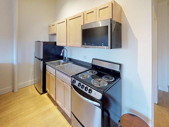 Top floor modern studio for rent, Open space, 2nd floor, New kitchen and bathroom, Very reasonable utilites, 3 Windows, Quiet and Professional building, Light, Wood plank floors, High ceilings, Laundry facilities in the building for resident's use, Located right near Big Fatty's and Elixir Restaurant, Reasonable utilities which are propane, electricity and internet,