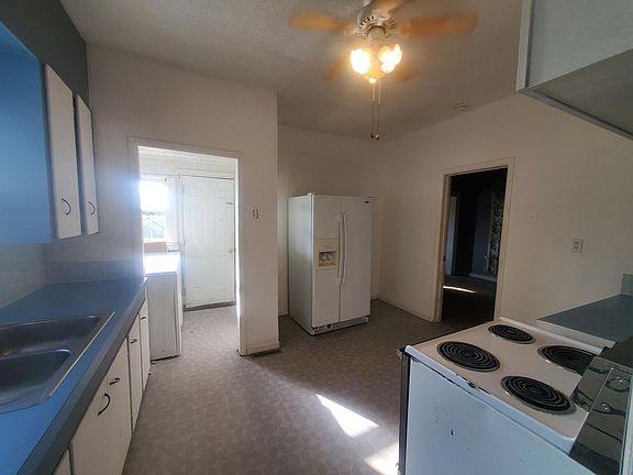 Three bedroom one bath. Large living room, dining room and Ki. areas. Classic big front porch area. Fenced back yard. Unfinished 1/2 basement. Covered car port.