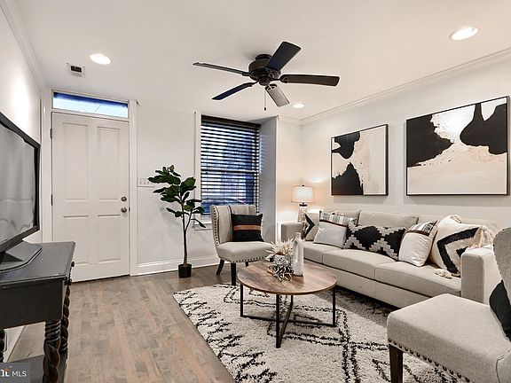 Step into this exquisitely renovated home, where modern aesthetics meet timeless comfort in the heart of Upper Fells Point. Boasting luxury vinyl plank flooring throughout the main floor, this residence sets the tone with a sophisticated yet welcoming vibe. The bright and airy living room is equipped with a ceiling fan and recessed lighting, creating the perfect ambiance for relaxation and social gatherings. Continue through the elegant hallway to discover a dining area that seamlessly opens to a high-end kitchen. Here, culinary dreams come true with sleek quartz countertops, stainless steel appliances, and stylish cabinetry, complemented by a door leading out to a serene rear yard. This private oasis features a charming patio, a privacy wall, and a cozy firepit, ideal for outdoor entertaining or tranquil evenings under the stars. Ascending to the second level, you'll find two well-appointed bedrooms, including one with an ensuite bathroom, adding a touch of luxury and convenience. An additional full bathroom in the hallway caters to both guests and residents alike. The convenience of a stackable washer and dryer on this floor makes everyday living a breeze. The third floor reveals a magnificent primary bedroom with an ensuite bath, offering a private retreat. Adjacent to this is a versatile sitting area with direct access to a deck, providing a picturesque spot to enjoy your morning coffee or unwind after a long day with breathtaking views of the neighborhood. Located in the vibrant Upper Fells Point, this home is just moments away from local eateries, boutiques, and the bustling waterfront, offering an urban lifestyle of convenience and charm. Don't miss the opportunity to make 241 S Regester St your new dream home.