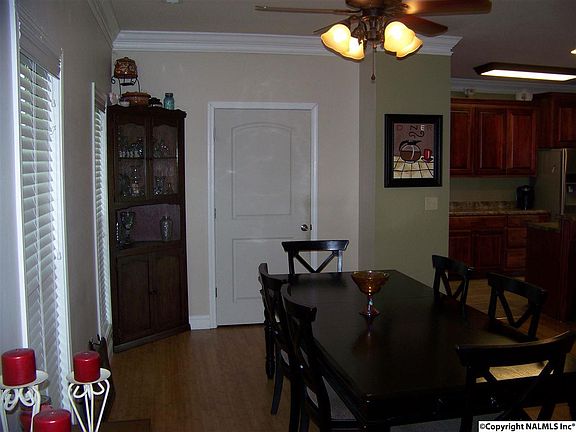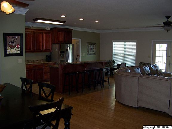 This 5yr old, 3 bedroom, 2 bath, brick/hardy board home, is located in a quiet country setting in the Fyffe/Geraldine area. The home features an open floor plan with a spacious living/kitchen area, a wood burning fireplace , bamboo hardwood floors and tile throughout, and a split bedroom design. The home also has an upstairs bonus room that could easily become a 4th bedroom if desired. There is a certified centrally located safe room in the residence, and the home has a 2 car attached garage. The front of the home has a double stairway leading up to the front entrance, jand the home has a security system. The home is priced 30k below recent bank appraisal!