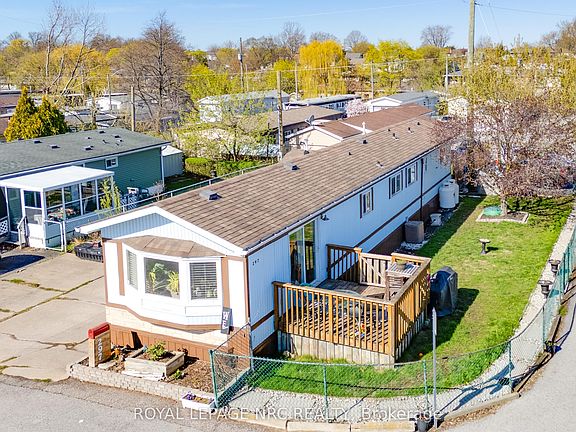 Affordable Living in a Prime St. Catharines Location! This stylishly updated 2-bedroom, 1-bath home offers just under 1000 sq. ft. of modern comfort in one of St. Catharines most convenient locations. Just minutes to downtown, the hospital, shopping, restaurants, and more, you'll love the ease of living in this well-connected community. Step inside to a bright, open-concept layout featuring a fully updated kitchen with a center island and a custom live-edge countertop perfect for both casual meals and entertaining. Recent upgrades throughout the home include newer shingles, furnace, hot water heater, drywall, lighting, and contemporary flooring. The remodeled bathroom boasts a walk-in shower, while the spacious bedrooms offers plenty of space for queens sized beds. Enjoy outdoor living with a private 10' x 10' deck, a large fully fenced yard ideal for gardening or relaxing and parking for three on a paved driveway. Situated on one of the largest corner lots in the park, this home delivers both space and privacy in a quiet, friendly neighborhood. Whether you're a first-time buyer or looking to downsize, this is a fantastic opportunity to own an affordable, move-in-ready home in a high-demand area with lending options available to make it even more accessible.