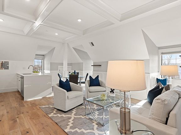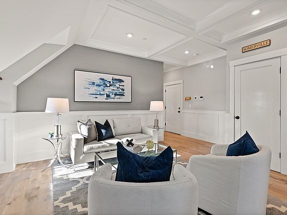 Welcome to 241 School St, Somerville—a beautifully renovated condo, completely converted in 2019 and still like new. Spanning 740 sq. ft., this one-bedroom, one-bathroom home blends modern comfort with timeless charm. The open-concept living area features coffered ceilings, engineered hardwood floors, and recessed lighting, creating a warm and inviting ambiance. The kitchen boasts a spacious island, premium counters, stainless steel appliances, a gas stove, and an Energy Star dishwasher, perfect for cooking and entertaining. The luxurious bathroom includes a double vanity and tiled shower, while central AC and heating provide year-round comfort. Additional perks include in-unit laundry, deeded basement storage, on-site driveway parking, and access to a beautifully landscaped common courtyard and garden. With its like-new condition and thoughtful upgrades, this condo is a true standout in the heart of Somerville.