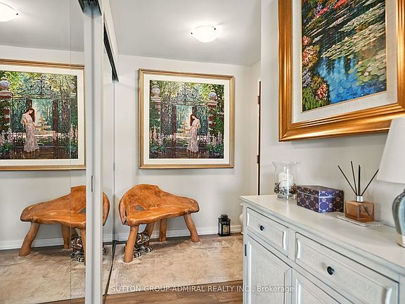 Corner suiteSun-filled southeast exposureLarge balconyCustom closet organizersSleek mirrored sliding doors
