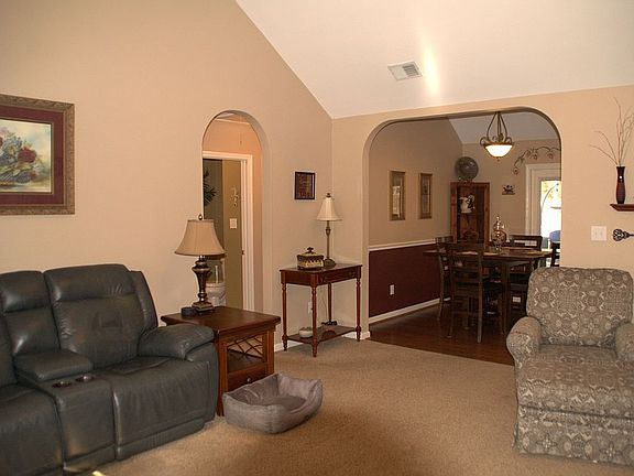 Charming 3 BR / 2 bath home located in the much sought-after Stagecoach Trace community in Alabaster. Located in a quiet cul-de-sac backed up to the woods and neighborhood walking trail with privacy. Large living room with vaulted or tray ceilings throughout with arched doorways. The master bedroom is very large with en-suite bathroom including walk-in shower and jetted spa tub, double vanities and walk-in closet. Split floor plan with other 2 bedrooms located across the main living area with second bathroom located between them. Open carport located on the back side of the house and screen room with ceiling fan.