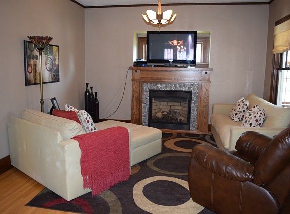 Single Family Home for sale by owner in Kindred, ND 58051. Craftsman style house built in 1926 on a quiet and large lot, almost one acre, with fully mature trees. Large private backyard. Original oak woodwork and oak flooring on main level, and maple woodwork on upper level. Large dining room with beautiful built-in hutch and lead glass windows. Main floor living room with gas fireplace. New kitchen with stainless steel appliances and gas range. Four bedrooms on second level with two walk-in closets and one full bath. Room off main floor living room could be also used as a bedroom/office. Split system high efficiency heat pump and A/C unit. Cove heat and 2 gas fireplaces. Family room on lower level with built-in desk area and gas fireplace. Three season front porch. Over-sized heated 24x30 double stall garage with loft for added storage. Also totally remodeled heated single stall garage for a man cave getaway. Asphalt driveway.