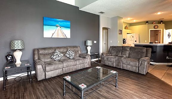 This property is a corporate rental. Please note that the monthly rental price for this property is dynamic and subject to seasonal adjustments. For an accurate quote, provide us with your intended move-in and move-out dates. Welcome to our peaceful retreat in the Westridge community on US27, a beloved spot for travelers to Orlando. This charming 4-bedroom home features a west-facing private pool, two spacious lounge areas, and access to community amenities like tennis courts and a playground. Enjoy the convenience of nearby dining options on US192 and quick access to Disney World (20-25 mins), SeaWorld, and Universal Resorts. Ideal for families seeking relaxation and adventure in equal measure. Property Overview: Tranquil retreat in the Westridge community on US27 4 bedrooms, ideal for families or groups West-facing private pool with no neighboring views Two spacious lounge areas each with flat-screen TVs Access to community amenities: tennis courts, playground Close proximity to US192 dining options and shops Convenient access to Disney World (20-25 mins), SeaWorld, and Universal Resorts Perfect for both relaxation and adventure-filled vacations Living Areas: Living Room : Comfortable sofas, TV, and patio doors opening to the pool area in the living room Family Room: Cozy seating, TV, and pool access through patio doors in the family room Kitchen : Modern kitchen with appliances and a breakfast bar for casual dining, plus a smaller table seating 4 Dining Area: Formal dining area accommodating six guests Entertainment options include access to community facilities such as tennis courts, basketball courts, children\'s play area, and an outdoor swimming pool Main Level: Master bedroom with a king-size bed, ceiling fan, TV, slide closet, patio door to pool deck, and en-suite bathroom featuring a bathtub, shower cubicle, dual sinks, and WC Queen-size bed with ceiling fan, TV, and slide closet Queen-size bed with ceiling fan, TV, and slide closet beds with ceiling fan, TV, and slide closet Bathroom adjacent to Bedroom 2 includes a shower cubicle, sink, WC, and direct access to the pool deck Bathroom between Bedrooms 3 and 4 features a shower over bath, sink, and WC Pool Area: West-facing private pool ensuring all-day sun exposure Spacious covered dining area adjacent to the pool Privacy assured with no neighboring views Direct access from the main lounge area Perfect for relaxation and enjoying the Florida sunshine Pool alarms installed for safety Contact us to schedule a showing.
