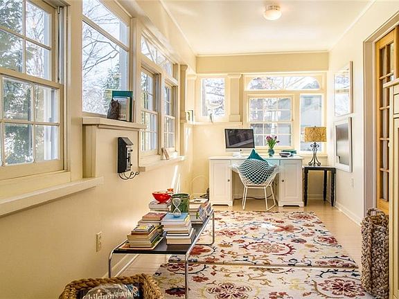Amazing "Bungalow" style home set on a large fenced lot w lovely back garden & patio accented by landscape pond framed by slate. Spectacular interior! Details will knock-you-out! Eat-in kitchen has been fully renovated w natural wood cabinets, decorative brick & a walk-in pantry!! Din rm boasts elaborate molded ceiling, square "pygmy columns" and built-in window seat! Step down into a BIG combo family rm/bedroom w southern exposure. The living rm is accented by French drs to a three season sun room & a brick decorative frplc flanked by built-in bookcases. Upstairs you'll see more gorgeous details including a hall linen closet in impeccable condition. The master bdrm is particularly impressive. It's quite large & features an elegant decorative fireplace. Newer windows, furnace, roof, more!