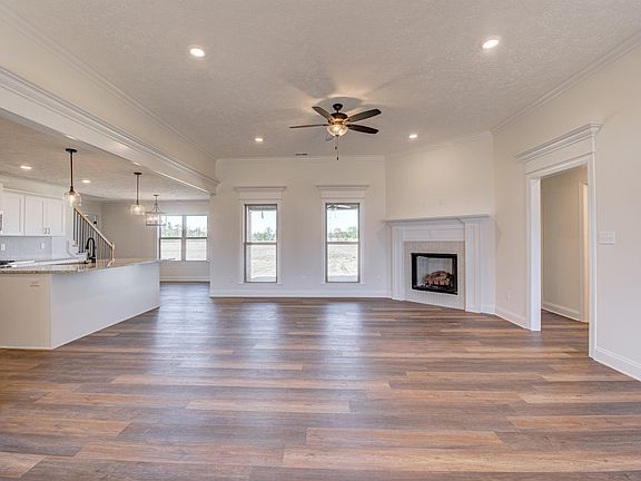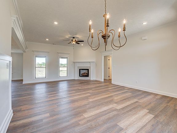 4 BR 3 BA with 3 car garage; Covered back porch;Cedar shutters LVP all downstairs and in upstairs bathroom; Carpet only on stairs and in upstairs bedroom; Tile master shower with fiberglass base and glass shower door; Oil Rubbed Bronze plumbing fixtures and hardware; White shaker cabinets throughout; Granite tops in kitchen; Marble tops in bathrooms Gas stove, gas fireplace, gas heat downstairs; 50 gallon electric water heater Tile around fireplace to match kitchen backsplash tile (herringbone)