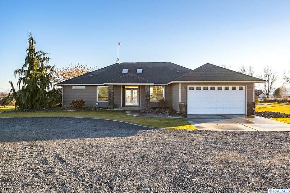 Private Paradise! Don't miss your chance to see this 3 bedrooms 2 bathroom 2 car garage home located on 5 acres in North Pasco with panoramic views of the Tri-Cities. The minute you walk in you will love the real hardwood floors that bring you to your open concept living and kitchen area. The kitchen features stainless steel appliances. Large bedrooms with a Master that fits a king size bed and an en suite with a giant shower and dual vanity. Home also features a formal dining area and an office or potential 4th bedroom. Do you have toys or a massive tool collection? If so you will be blown away by the 36x60 insulated shop that has surround sound and another heated/cooled office and a half bathroom. Backyard offers amazing views, plenty of room for entertaining, a playset and trampoline. A must see! Contact your favorite realtor today for a private showing!!!