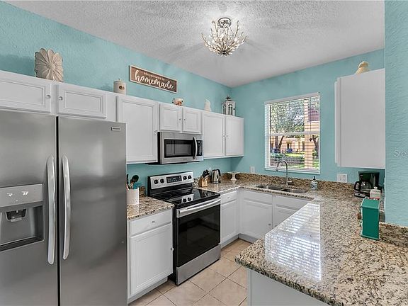 Welcome to the highly desirable 24-hour gated community of Regal Palms Resort located only 20 minutes to Disney and across from the extremely popular Highland Reserve Golf Club. This 4-bedroom, 3-bath townhome is being sold fully furnished and it can be used as a primary residence, vacation home or short-term rental/Airbnb. The owner is not restricted to the amount of time they can use the unit. Conveniently located on the first floor is a spacious bedroom with a separate entrance connected to a full bath. Located upstairs is the large master bedroom with an en-suite bathroom, 2 additional bedrooms and another full bath. Upgrades include new laminate flooring in all the bedrooms and stairs, new stainless steel appliances, new granite countertop in the kitchen, new cherrywood dining table and chairs, new vantage style sofa and loveseat, new beds and mattresses in all bedrooms, new coffee table, new console table, new nightstands, new dresses, new TVs in the living room and each bedroom, new light fixtures, new full-size LG steam washer and dryer, new Kohler toilets in each bathroom and the entire home is freshly painted. Basically, every single item in the unit is brand new. Regal Palms Resort & Spa amenities include a pirate-themed arcade, 2-1/2-acre tropical swimming pool & lazy river, water slide, fitness center with jacuzzi, sauna & steam room, Cenoté day spa, business center, on-site restaurant Frankie Farrells, ice cream parlor, outside terrace & patio, poolside tiki bar, beach volleyball court, and kid's playground. Guest Services is open 24 hours and there's an on-site marketplace. Regal Palms HOA includes basic cable, phone, internet, exterior pest control and lawn maintenance. Don't miss the chance to own this fantastic property close to all the major theme parks, Publix and restaurants.