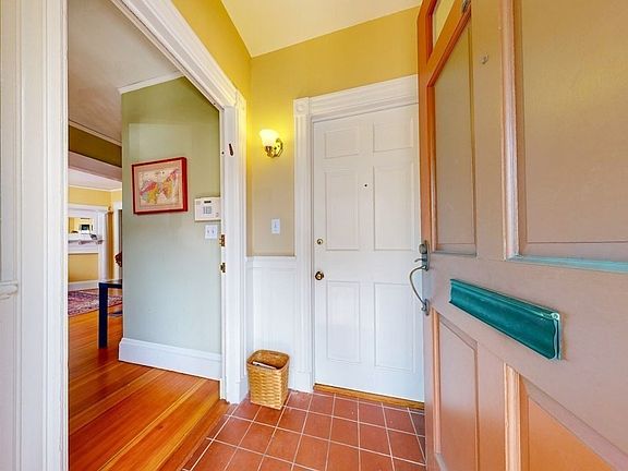 This light-filled Philly-style condo sits on a corner lot nestled on a side street by Raymond Park. The private front door is off the tiled entry to the bldg. Inside, the foyer leads to a spacious LR w/bay and piano windows, mirrored mantle, and built-in bookcase. The adjoining DR features bay windows and built-in china cabinet. The kitchen has timeless style w/white cabinets and appliances, stone counters, and an antique wood island. Pocket doors open to a bedroom w/built-in bookcases; a full bath and closets complete the 1st fl. Upstairs is a primary suite w/full bath. Partially finished lower level has bonus room and laundry as well as storage. Private rear porch overlooks beautifully landscaped shared yard for gardening, entertaining, and relaxing. Parking for 1 car, central air. Walk to shops and restaurants in Huron Village and Porter Sq. Near theaters, bike paths, parks. Transit options include subway, commuter rail, bus lines. Reach Harvard, MIT, and Tufts by foot, bike, or T.
