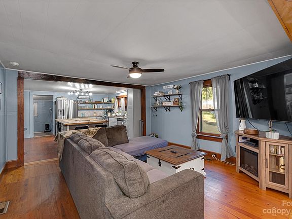 Updated and move-in ready home, conveniently located near Lake James and downtown Marion. The open floor plan offers a large butcher block eat-in island with storage, new granite countertops, custom cabinets, stainless steel appliances, farmhouse stainless sink, and wine fridge. If that's not enough, refinished original hardwood floors, updated bathroom vanities and flooring, new light fixtures throughout, new flooring in laundry room, new metal roof, hot water heater and ADT security system. Outside area offers a large yard with mature landscaping, fruit trees, storage shed, pea stone patio with firepit, garden areas, covered front porch and extra parking.