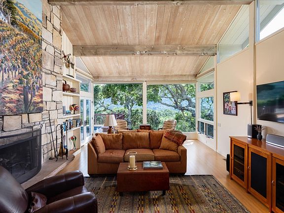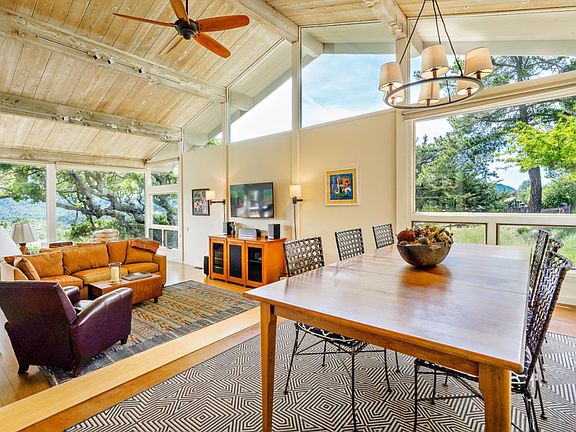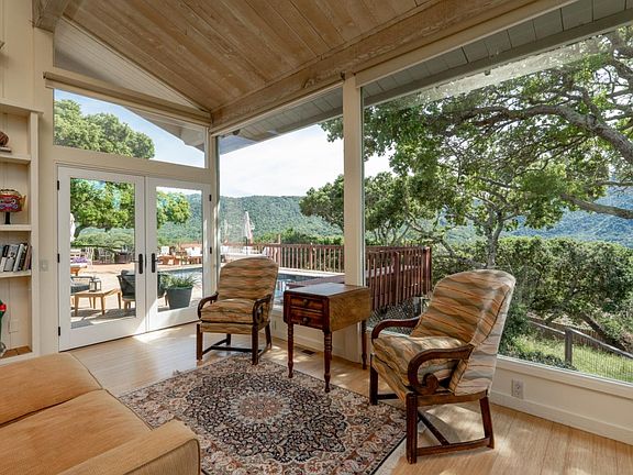 Beautifully updated single story 3 bed 3 bath home with gorgeous views of the surrounding Carmel Valley mountains. The house boasts vaulted wood beam ceilings and large expansive windows to take in the views of the large oaks. The stylish kitchen and living areas have window sliders leading to the spacious deck, patio and pool, making it it perfect for entertaining. A separate wing with its own living space and entrance is ideal for a multi-generational situation or it can be used as a second family room, office or gym. Green features: solar, solar heated pool, dual pane windows and electric vehicle hookup. Situated on picturesque 2+ acre rolling lot complete with a playground set and large shed that doubles as a workshop. Just minutes to Carmel Valley Villages restaurants, wine tasting and shops in the coveted Carmel Unified school district.