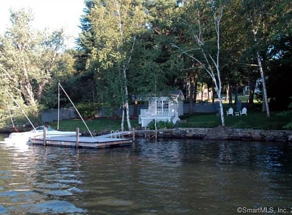 Idyllic Lake Waramaug getaway on oversized parcel. Renovated shingle-style lake house with classic covered front porch. Three bedrooms, two and a half baths (master bath en-suite, additional 2 bedrooms share a bath). Second floor air conditioned. Fully rebuilt /renovated in 2000, large stone patio, sweeping lawn and boat house with floating dock. Private.