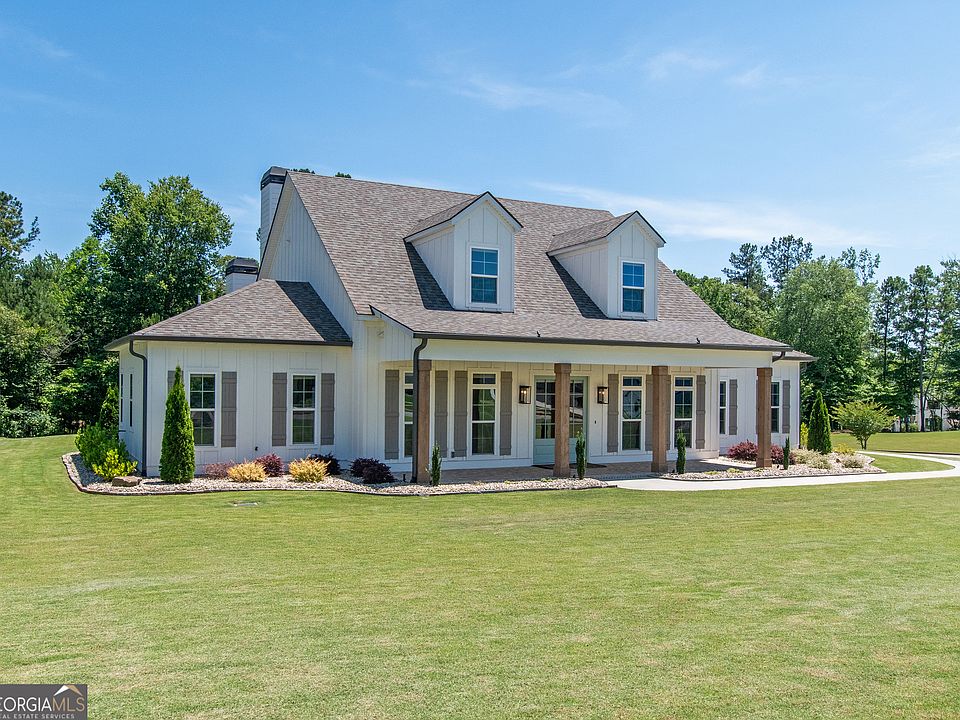 Welcome to Your Dream Home in Prestigious Northshore @ Lake Redwine. This stunning, custom Mitch Ginn, Modern Farmhouse Plan will take your breath away with the ideal layout for entertaining and functionality with the laundry room off the Primary Bathroom. Not only 2 1/2 years old, this custom home is in remarkable condition, just as you were buying a brand new home today. As you approach the well-designed landscaped lawn, the front porch awaits you, then you open the door to the inviting foyer with hardwood flooring, to the right is the Entertaining Dining Room w/Tray Ceiling, Board and Batten Trim with Hardwood Flooring, pass the Butler's Pantry with Floating Shelves, Beverage Cooler, Quartz Counter, and Custom Tile Backsplash, and you will see the Bright, Gourmet Chef's Kitchen with soft close Custom Cabinetry, Quartz Counters, Hardwood Flooring, Stainless-Steel Appliances including Convection Built-In Microwave/Oven, Wall Oven, Refrigerator, and Dishwasher, a Farmhouse Sink in the Huge Island, large Walk-In Pantry, and a 5 gas surface top with Custom Vent Hood, then you will be welcomed by the Keeping Room with Brick Surround Fireplace, Recessed Lighting, and Cedar Wrapped Beams, that opens to the Spacious Family Room also accented with Cedar Wrapped Beams, Vaulted Ceilings, Hardwood Flooring, Brick Surround Fireplace, Recessed Lighting, Custom Sonos Sound System with TV, Floating Shelves, and a Wall of Windows with Custom Shades (remote control for the top shades) Overlooking the Covered Porch and Outdoor Living Space, around the corner is the Powder Room w/Tile Surround, Quartz Counter, and Hardwood flooring, right outside the powder room is the Split Bedroom Plan, Primary Bedroom with Hardwood Flooring and Recessed Lighting, Primary Bathroom with Two Vanities offering Custom Cabinetry and Quartz Counter's, Free-Standing Tub, Walk-In Tile Surround Shower w/Corner Seat, and Walk-In Custom Closet for Two, Laundry Room off the Primary Suite with Custom Flooring, Quartz Counter, and Floating Shelves, then you walk to the Mud Bench with Cubbies and Hooks for Storage, Other side of this Custom Home are the Two over-sized bedrooms with walk-in Closets, Each offers their own Private Bathrooms w/Tile Flooring, Linen Closet, Tile Surround Shower/Tub Combination, and Quartz Counters, As you walk upstairs, you will see the additional Rooms to include a Bonus/Recreation Room with Recessed Lighting and a Ceiling Fan, Gym Area with Walk-Out Attic Storage Area, Fourth Bedroom with Walk-In Closet and Attic Doors for additional storage, Full Bathroom w/Quartz Counter, Tile Flooring, Tile Surround Shower/Tub Combination, and a Linen Closet, As you walk Back downstairs you will see the interior paint that is flawless throughout, then out the Keeping Room backdoor, you are invited to an amazing outdoor living space to include a Covered Patio with TV, an Outdoor Kitchen with Blaze Grill, Beverage Cooler, Trash/Recycling, Storage Area, a Fire Pit Area for Entertaining, a Synthetic Turf for more Fun and Games for all, You truly will enjoy this Landscaped Backyard with complete Irrigation System, Rock Beds, and Custom Exterior Lighting, and around the corner is the 3 Car, Side Entry Garage, Tankless Water Heater, Alarm System, and included with this home is Lake Redwine Community which offers the 300 acre pristine lake, Large Pool with Splash pad Entry, Covered Pavilion with Stone Surround Fireplace, Playground, Tennis and Lighted Pickle ball Courts, Sidewalks, Street Lights, and so much more.