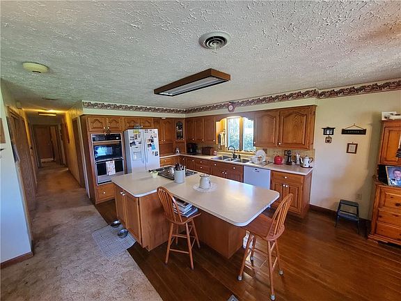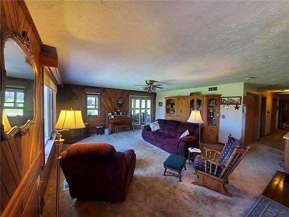 Beautiful Stone Home in Very Private Setting Features Open Floorplan and Wall of Windows with Fantastic View! A 2 Car Detached and 2 Car Integral Garage Provide Plenty of Space for Parking and Toys. Oak Kitchen with HW Floors and Island, French Doors Lead to Large Sunroom and Deck. Master Bath with Jetted Tub & French Doors to Sunroom. Lower Level with Family Room, Wet Bar and Field Stone WB and Office with Built in Desk and a Craft Room. Rear Deck Overlooking Landscaped Yard all on 31.35 Acres!