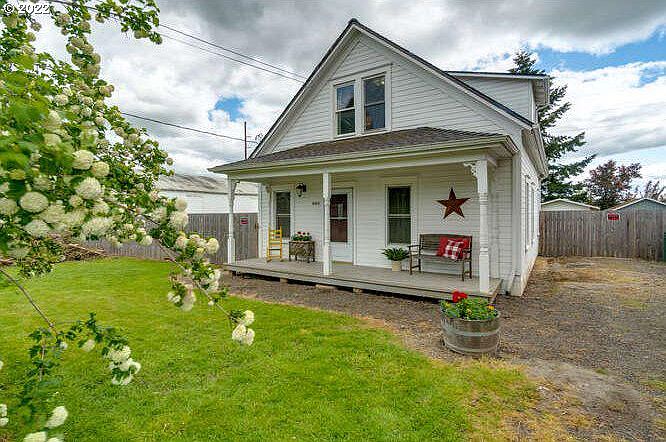 Completely updated farm house with RV parking & chicken coop. Charm of yesteryear with important updates. From the farm style front porch to the high ceilings, original trim, ship-lap & wood flooring, this home is truly special. Completely updated kitchen & baths! New foundation, electric (including panel), plumbing, roof, fixtures and more! Primary and full bath on the main! Two bedrooms & full bath upstairs. Large fenced backyard with patio, detached shop w/ cement floor & power.