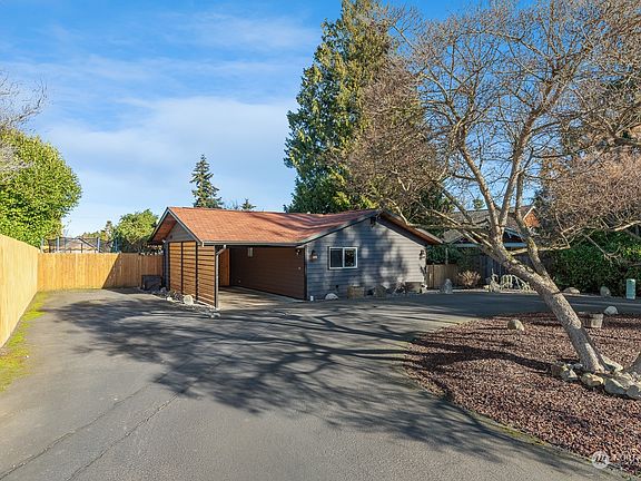 Welcome to your private sanctuary, where peace & quiet await. Charming 3-bedroom, 1 ¾-bath home offers thoughtful blend of comfort & function. Kitchen features an eating space, pantry & some newer appliances, complemented by a reverse osmosis water filtration system. Vaulted living room adorned w/painted shiplap walls & ceilings wraps you in warmth, while skylights, overhead fan & cozy fireplace create bright & inviting retreat. Outside a fully fenced yard, shed, greenhouse & delightful outdoor living spaces for relaxing or entertaining. Oversized 2-car garage w/shop space, carport & ample on-property parking allows room for all. Nestled in prime location minutes from downtown, ferries, schools, parks & stores-giving privacy & convenience.