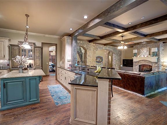 Peace and elegance combined to create this beautiful home in Redbud Canyon. Resting on 1.42 acres in a private cul-de-sac, this home provides an abundance of space for your family! Inside, upgrades galore! Hand-scraped hardwood floors, stone accent walls, beautiful granite countertops, iron staircase railing, custom cabinetry throughout and an amazing media room for game day! This home boasts 5 bedrooms (two masters down, 3 kids upstairs) and 4.5 bathrooms, a dedicated study with beautiful woodwork, a custom wine cubby under the stairs, an indoor/in-ground storm shelter and even a secret room in one of the kids rooms! Can you find it? The main garage is oversized with a work bench and has every wall lined in cedar! The backyard is absolutely stunning with huge mature trees, an outdoor kitchen, fire pit, custom-built sandbox and tree house for the kids! Your house will be the "hangout" for sure! This custom home is truly stunning and must be seen to believe!