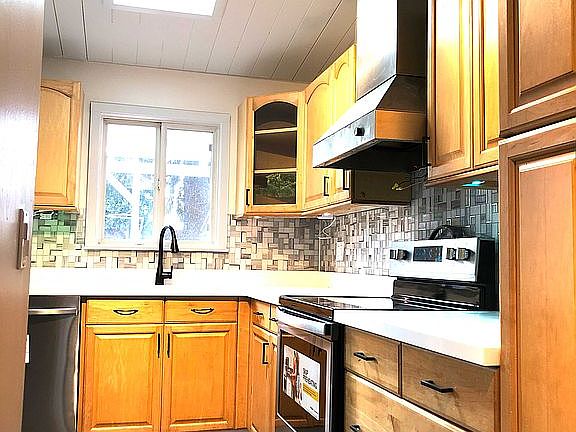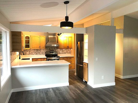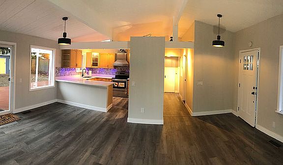 No details were left out in this mid-century modernized rambler on a corner lot in Eastmont. Everything shines anew. Brand new appliances, fresh vinyl and tile flooring throughout, a main bath with gorgeous new tile...there are very few homes like it out there today. Sit on your covered front porch for evening relaxation, or enjoy the spacious backyard that has been seeded and will sing a green song come spring alongside the dedicated a garden space. Lights have been updated to give each room an elegant feel. A refreshed shed or small play house matches right in with the decor of the main. You'll love the vaulted ceilings with open beams, and bright skylights over your open concept kitchen that keeps you connected. At last but not least, a large 575 sq ft garage that could make the perfect workshop or craft studio. Located in a great neighborhood, quiet, yet close to everything! Minutes to Boeing, Costco, Everett Mall, Silver Lake and I-5.