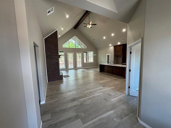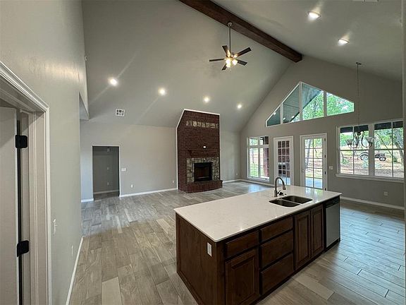 Motivated to sell with $2,500 in Seller Concessions! Welcome to your dream home in the prestigious Black Jack Acres addition! This stunning 3-bedroom, 2-bathroom brick home on a spacious corner lot boasts luxury living at its finest. As you step through the double entry doors, you'll be greeted by the grandeur of vaulted ceilings and custom woodwork throughout. The expansive living area features not one, but two fireplaces - a huge indoor fireplace perfect for cozy nights in, and an outdoor fireplace on the vaulted back patio, ideal for entertaining guests year-round. The heart of this home lies in its kitchen, complete with a 10-foot long island and double sink, offering both functionality and style. Whether you're hosting dinner parties or preparing family meals, this kitchen is sure to impress. Retreat to the master bedroom featuring a luxurious tub, walk-in shower, and ample closet space. Two additional bedrooms provide plenty of room for family or guests, and the office space offers a quiet place to work or study.