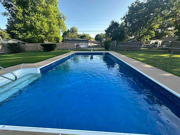 Impeccably kept home with 3 bedrooms, 2 full bathrooms, open concept living room, kitchen dining. Updated bathrooms, vinyl windows, eaves and brick exterior make for easy maintenance. The backyard has a wonderful covered patio 34 x 16 inground pool that is just stunning and pool house with 1/2 bath. Fenced backyard with alleyway access and amazing neighborhood!