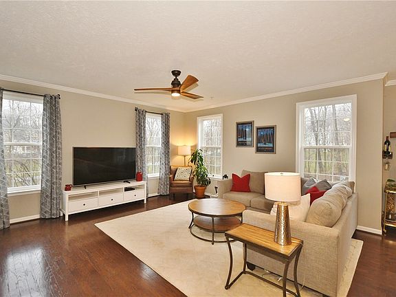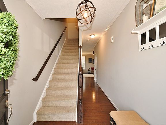 This "better than new" end unit townhome has a beautiful open floorplan & windows galore! Level entry with a convenient 2 car attached garage, the main level has gleaming hardwood floors, 10' ceilings with recessed lighting & crown molding. The espresso kitchen features a large pantry, stainless appliances & granite countertops with bar seating. The attached dining area leads to the maintenance-free deck & serene wooded back yard. Upstairs, retreat through the double doors to the master suite with tray ceiling & walk-in closet, spa-like bathroom with double vanity, large soaking tub, and beautifully tiled shower. Two additional light-filled bedrooms, large hall bath with dual vanity & convenient 2nd floor laundry help with the morning routine. Downstairs is a huge finished gameroom with plush carpeting, a large storage room, & rough ins for a full bath! With spring at our door, enjoy all of the freshly upgraded landscaping that will flourish through the years to come!