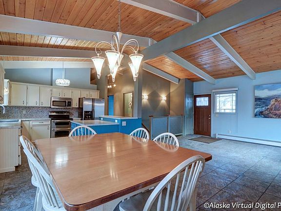 Lovely Home in well established Eastside Neighborhood. Open floor plan, great for entertaining w/vaulted pine ceilings throughout. Catch beautiful sunsets frm large picture windows and deck. Downstairs has lrg family room & XL utility room. Good size bedrooms. Large lot w/fenced backyard. New roof &custom gutters 2016. Newer boiler w/ on demand hot water heater. Garage has new heater &garage doors