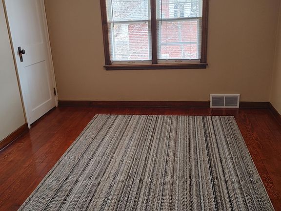 One bedroom one bath upper unit. Freshly painted and newer floors throughout. Includes stove, refrigerator, laundry hook ups in basement, airing porch, garbage service, heat, and electric. Parking off street for one vehicle and close to public transportation Landlord responsible for utilities and garbage service. No smoking inside building and no pets. Off street parking for one vehicle. Tenants to help clear snow from drive and sidewalk. Month to month rental agreement signed at occupancy.