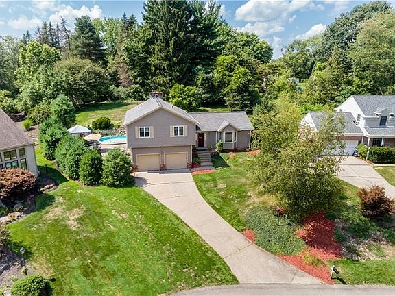 NEW PICTURES TO COME. CURRENT PHOTOS DO NOT REFLECT UPDATES. NEWLY UPDATED kitchen with white cabinetry & new quartz counter tops. New floors in living room & dining room. All new carpeting in family room & bedrooms. Freshly painted interior! Situated on a private cul-de-sac, this multi-level home is ideal for entertaining both inside & out! Private outdoor oasis includes an in-ground pool w/swimming jets, waterfall, cabana & bar area, large patio plus an upper yard. Interior boasts cathedral ceilings & an open floor plan. Family room has brick fireplace & steps up to kitchen with newer stainless appliances. Upper level master bedroom with fireplace, walk-in closet, vaulted ceiling & private deck. Finished lower level with recreational area with bar, fireplace, half bath & storage closets. Other updates: newer roof, newer newer A/C, newer hot water tank, newer electrical box; 220-line is set up for a hot tub outside.