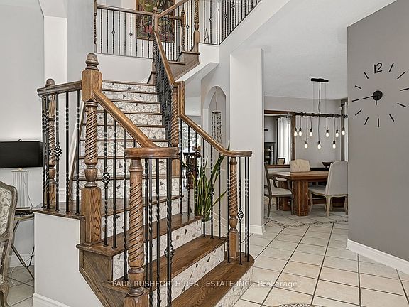 Elegant 4+1 Bedroom Family Home with Backyard Oasis in Chapel Hill South! Nestled on a quiet street, this beautifully appointed home offers exceptional living inside and out. With its inviting front veranda, tasteful interlock, and classic curb appeal, this home is designed to impress.The main level is ideal for both formal and casual living, featuring distinct living and dining rooms, a cozy family room adjacent to the kitchen, and a main floor den perfect for working from home. The gourmet kitchen blends warmth and luxury with its custom millwork, built-in appliances, and an eye-catching social centre island, a space where everyone will gather. Upstairs features hardwood floors throughout, four generously sized bedrooms, a modern main bathroom, and a luxurious primary suite complete with a 5-piece ensuite featuring a floating double vanity, glass shower, and a freestanding tub that invites relaxation.The finished basement expands your living space with a large rec room and convenient 2-piece bath, ideal for movie nights, a home gym, or play area plus a 5th bedroom.Step outside to your private backyard oasis, where summer living takes center stage. Enjoy the inground pool, interlock stone patio, and ample space for BBQs and entertaining.This is a home that truly checks all the boxes; style, space, and location. Don't miss your opportunity to call it yours!